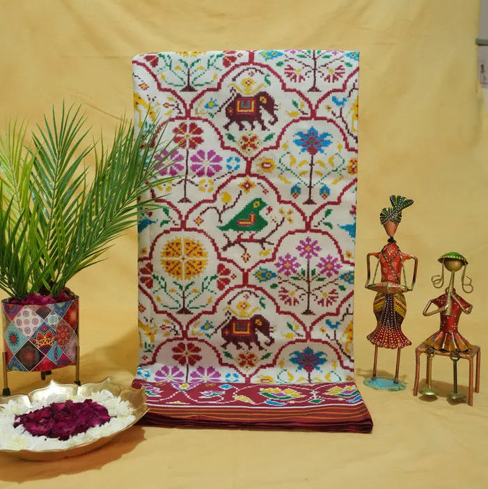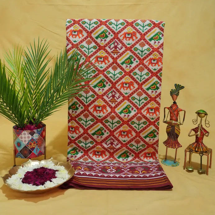 Design : Its in traditional Chhabdi HathiDupatta: Single Ikat Patola DupattaSize : 45″ Width * 2.10 Meter LengthManufacturing...